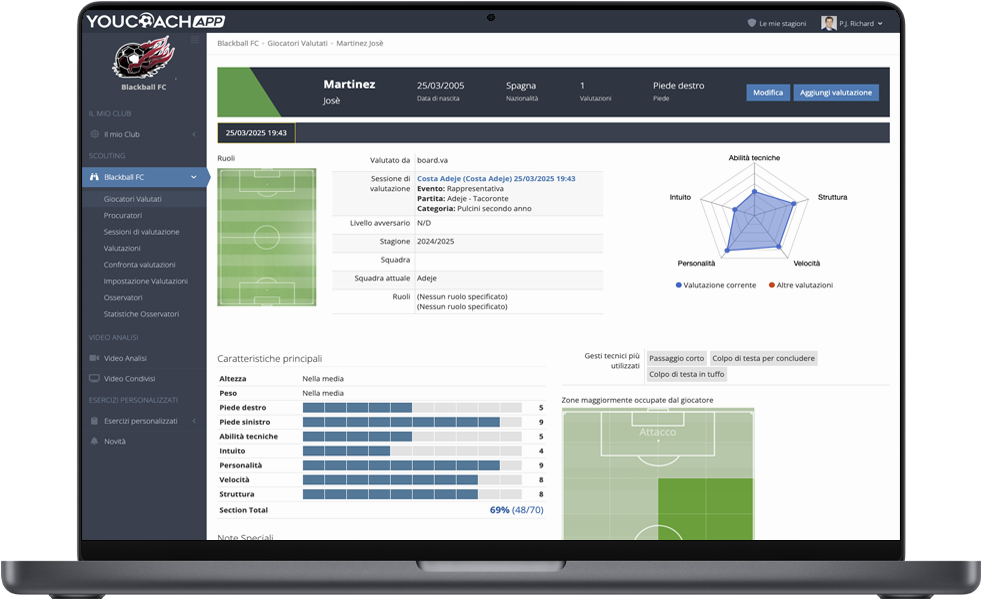 YouCoach Appは、仕事をプロフェッショナル化したいすべてのレベルのコーチ、トレーニング負荷を監視するフィットネスコーチ、強力で直感的なツールを探しているビデオアナリスト、複数のチームを管理するテクニカルディレクター、統合プラットフォームですべてのテクニカルスタッフの活動を調整したいクラブに最適です。