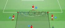 - 最初にパスを受けたアタッカー1はコンビを組むもう一人のアタッカー2にパスを送ります。
