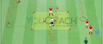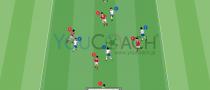 - ゾーンBのプレイヤーにはトラップせずにワンタッチパスを要求。