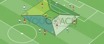 - ゾーンCのプレイヤーはゾーンAに近づく動きを一度入れてからすぐさまエリア内の動きにスイッチ。パスを受けたらすぐさまシュート。