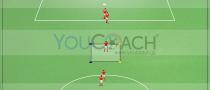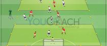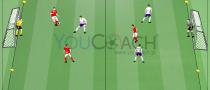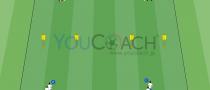 - 青色のチームは、フリーマンの3人(黄色)と共にポゼッションをキープしなければいけない。青色のプレイヤーは2ずつ向かい合うように、エリアの外に配置する