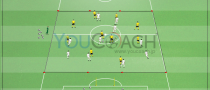 - もしポゼッション中にディフェンスの緑チーム(2名)がボールを奪った場合、近いサイドのゴールにシュートを狙います。