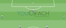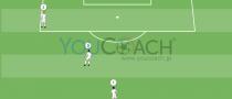 簡略化された、ゴールへシュートを打つためのCFの壁パスと3対2の状況 |