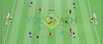 通常サイズのハーフコート内に、白の選手8人(フルバック2人、ミッドフィルダー3人、フォワード3人)対中央の赤の選手2人(センターバック2人)を想定して配置する。コーチはボールを持ってゴールの方を向き、だいたいペナルティーエリアのあたりにいる。キーパーはゴールを守る。