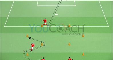 Presentiamo un esercizio estrapolato dall'academy del PSV, per i giovani calciatori. Con questa esercitazione possiamo allenare conduzione di palla e finalizzazione in porta.Coachpedia