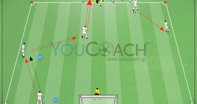 スモールサイドゲーム:「グラウンダーのマイナスボールをフィニッシュ」