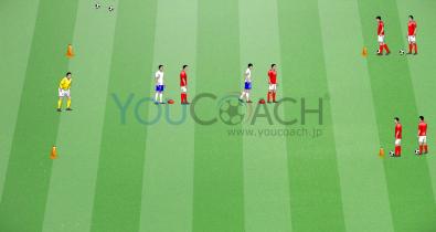 このトレーニングは様々なプレイヤーが近づく動きをしながら一連のパス交換をするものである技術