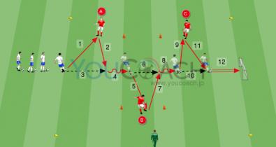 ディフェンスのフェーズ、ボールポゼッション、フィニッシュスキルの向上に効果的なトレーニングです。技術