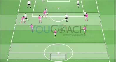 オフザボールの動き出しとパスワークによる攻撃の構築、そしてフィニッシュまでの一連の流れを見てみましょう。ページ