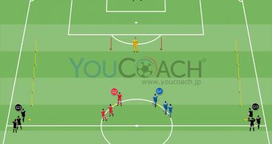 ボールを2球使用してプレーヤー3人の連係からフィニッシュを2回行います。戦術