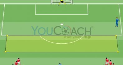 ボールポゼッションのサポート役となるフリーマンを加えた1対1のシチュエーショントレーニングです。技術