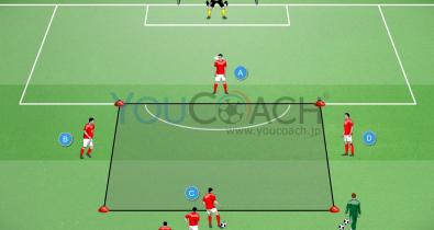 実戦を想定したゲームですが、パス回数や異なるアングルからのシュートなど、いくつかの条件を加えています。クオリティの高いチームとは、拮抗した状況の中でも一瞬の隙を逃さずに得点を決める事の出来るチームです。ページ