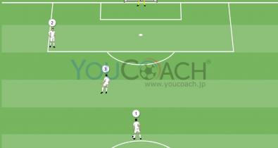 2列目の選手による第3の動きと、背後からのフィニッシュを向上させるレアルマドリーより抜粋したトレーニングです。技術