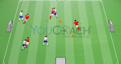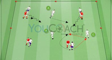 ボールポゼッションのサポート役となるフリーマンを加えた1対1のシチュエーショントレーニングです。ページ