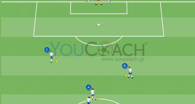 素早いパスワークとオーバーラップの後にフィニッシュを決める練習メニュー。戦術
