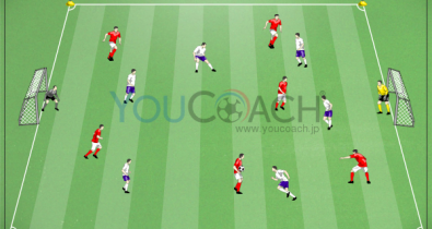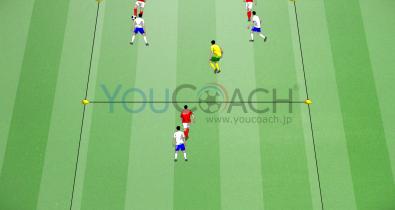敵からプレッシャーがかかっている状況での判断力を養うウォームアップに最適なトレーニング技術