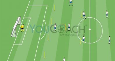 フリーなスペースへマークを外すことも磨きながら、パス、マークを外す動き、ディフェンスのポジショニングを上達させるテーマトレーニングフィジカル
