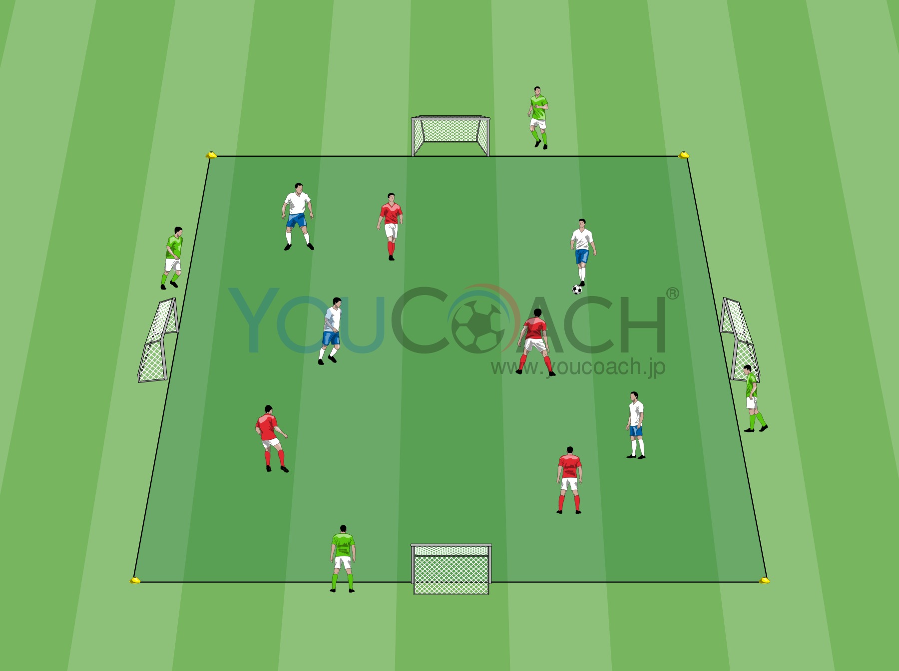 トレーニング自体は、しっかりとサッカー選手に必要なポイントをふまえ、単純なトレーニングから徐々に複雑な状況やルールを追加することでレベルアップさせていくことができます。