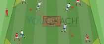 マークを外す能力や、ディフェンスの局面でいえばマークする能力と相手のボールを奪うためのポジショニング力を磨くための1対1もしくは1対2のプレー状況の中で、相手を抜き去るドリブルや勝負する能力を高めましょう。このトレーニングは素早いパス交換とフィニッシュの為の"出して動く"というシチュエーションの関連性を理解し適用するために有効です。
