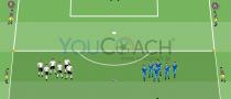 プレイヤー10×10メートルのコートを幅広く使います。ポゼッションチームは3つ辺にはプレイヤー1人ずつつき、残りの1つ辺には2人つく状況となります。コート内のプレイヤー2人はインターセプトを狙います。ポゼッションチームのプレイヤーは各自がいる辺のみしか動けない。もし、ディフェンスがインターセプトに成功した場合は、パスをカットされたプレイヤーと交代する。