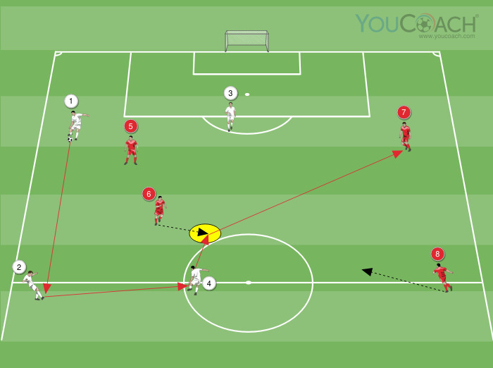 Recuperar a bola e realizar uma rápida inversão de passes, escola Real Madrid |