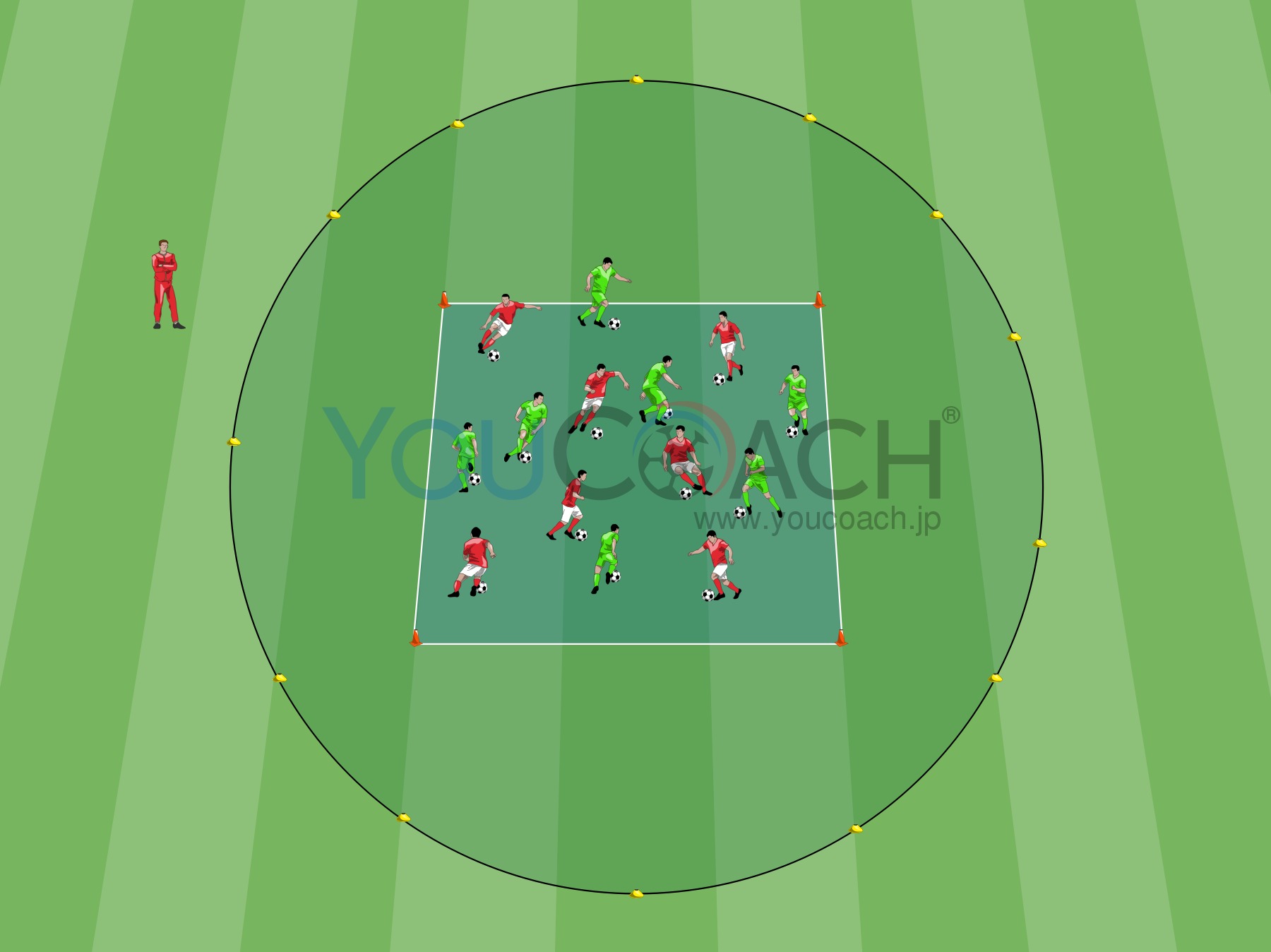 ボールポゼッション - ポゼッションからのゴール、2つテーマを加えた試合形式トレーニング -
