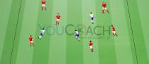 プレーエリア:40 x 55m プレーヤー:14名+GK2名 所要時間:10分 セット数:5セット x 4分プレー+1分パッシブレスト