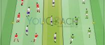 プレーエリア:25 x 20m プレーヤー:6~10名 所要時間:15分 セット数:2セット x 6分プレー+3分アクティブレスト