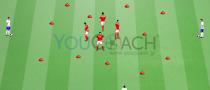 ディフェンスを行うと同時にシュートまで持ち込む戦術を意識したテーマ形式トレーニングです。 |