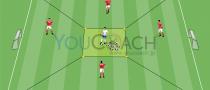 4対2:パス、マークを外す、ディフェンスのポジショニング |