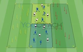 スモールサイドゲーム:4対4-相手を抜くドリブルとミニグリッドへのゴール