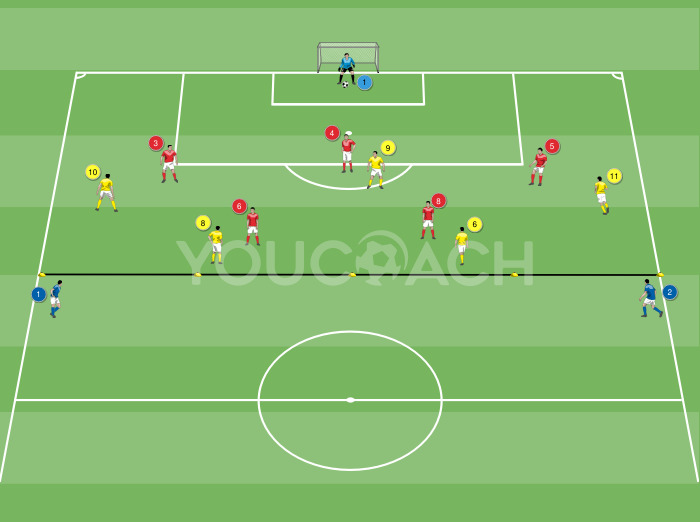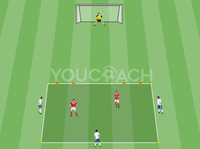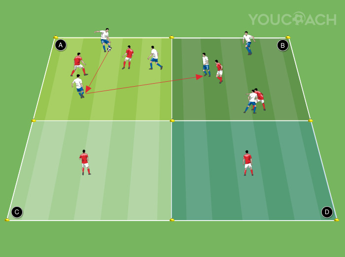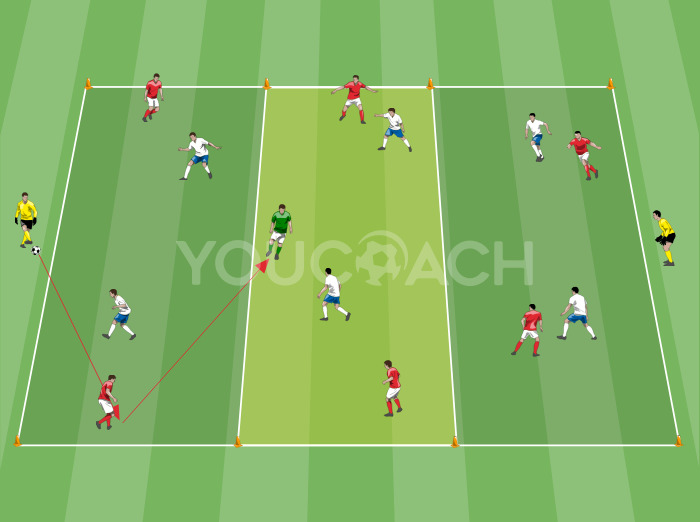 ボールポゼッション - Gioco semplificato 3 contro 2 per allenare il possesso palla, lo smarcamento durante il possesso e le transizioni -